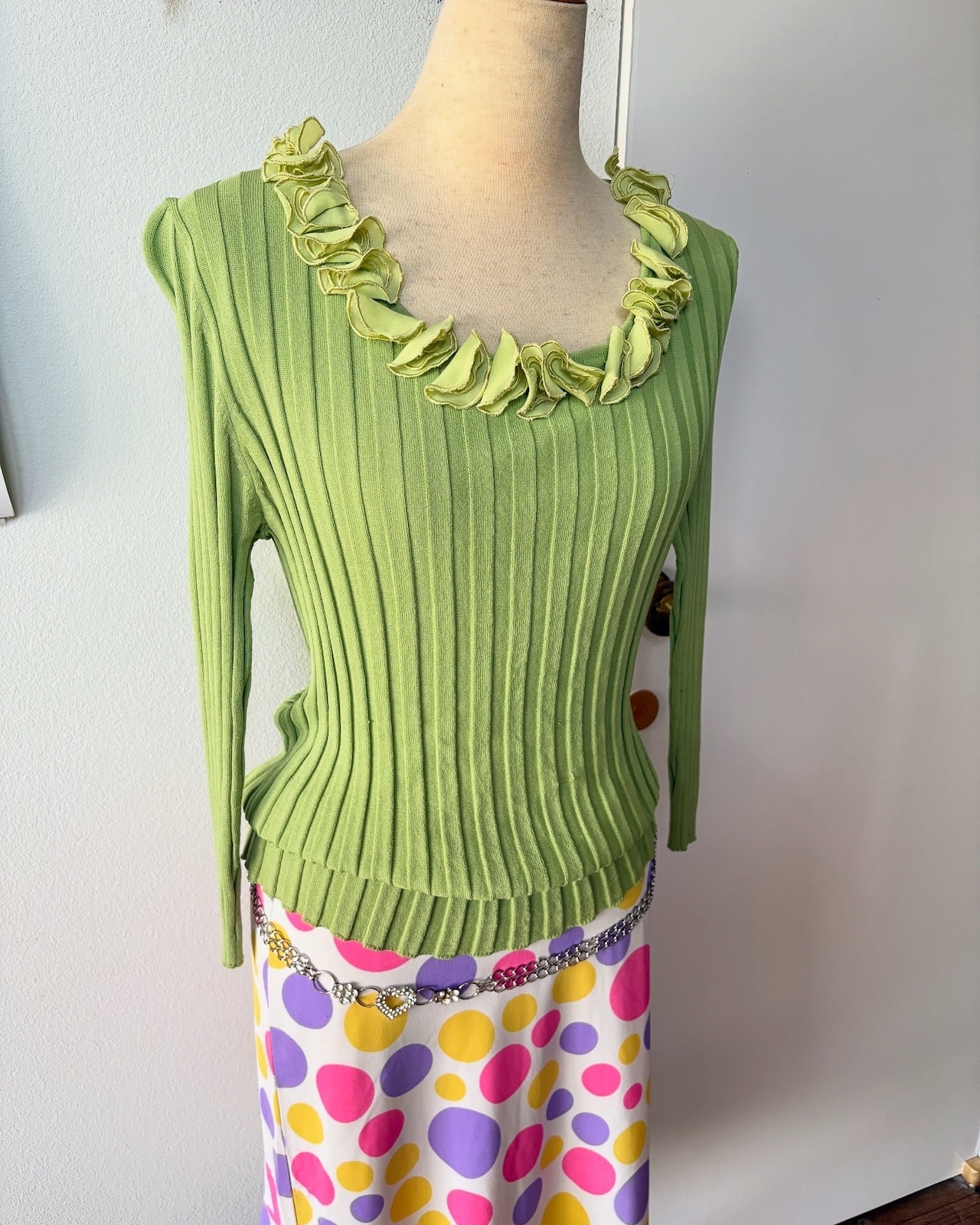 かなり伸縮性のある素材感なので身幅に関しては記載しておりませんが、どなたでもご着用いただけると思います。