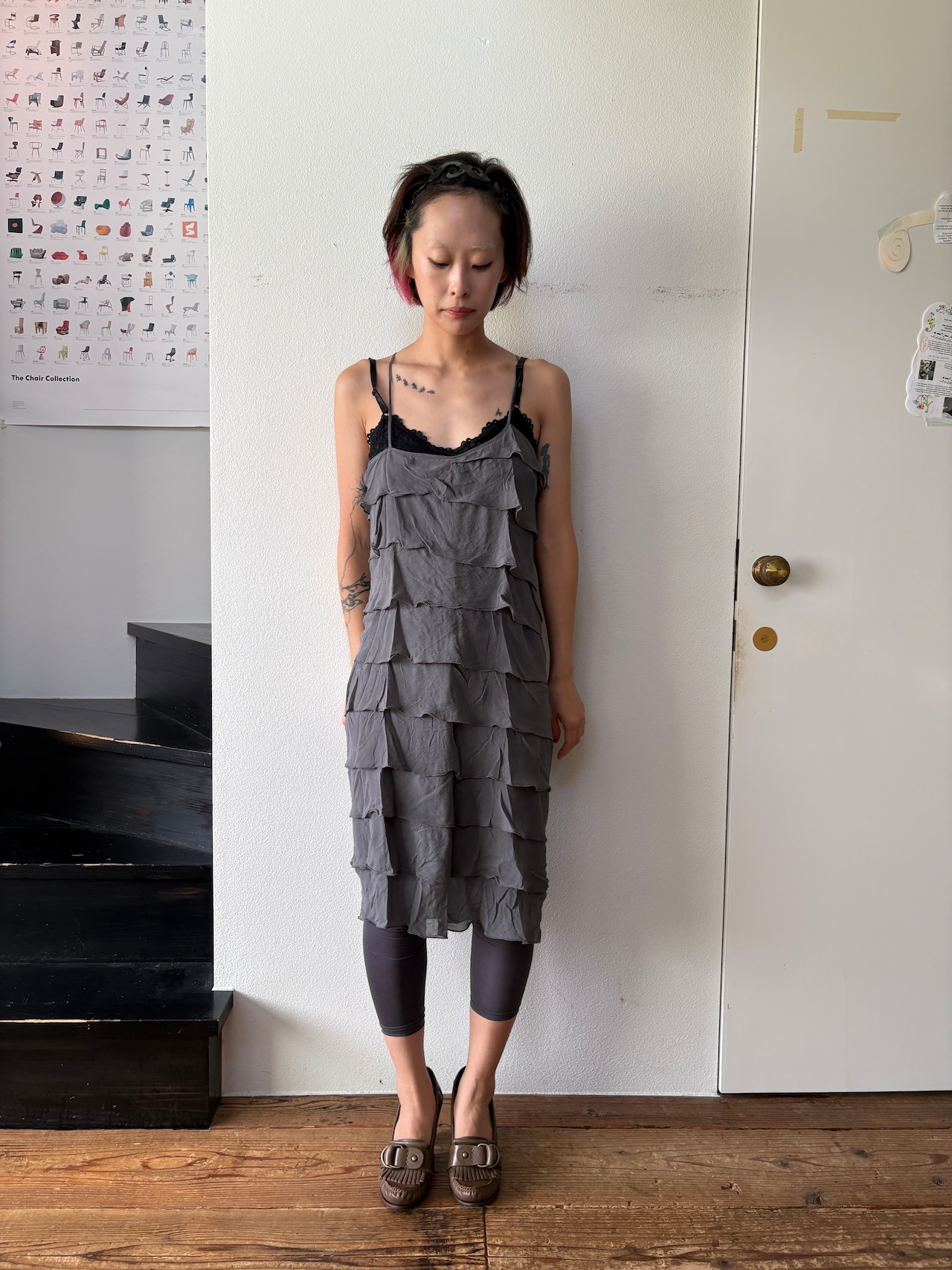 gray frill dress