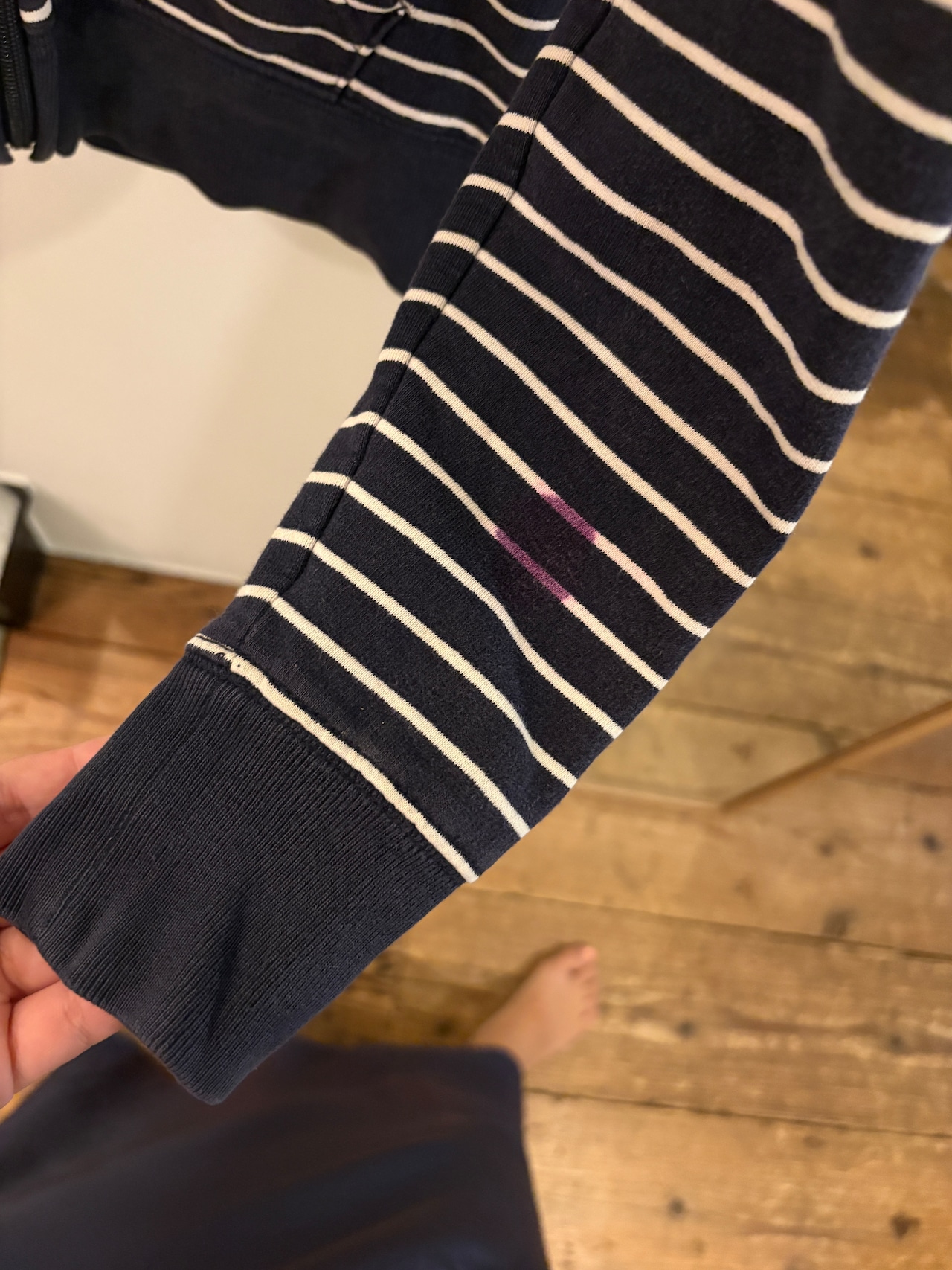右手首内側にシミ、背中部分に少し色褪せがあります。
